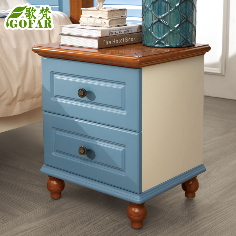 歌梵 床头柜 地中海美式乡村蓝色田园床边柜 储物卧室家具 品质保障 用料环保 质保5年--不单卖